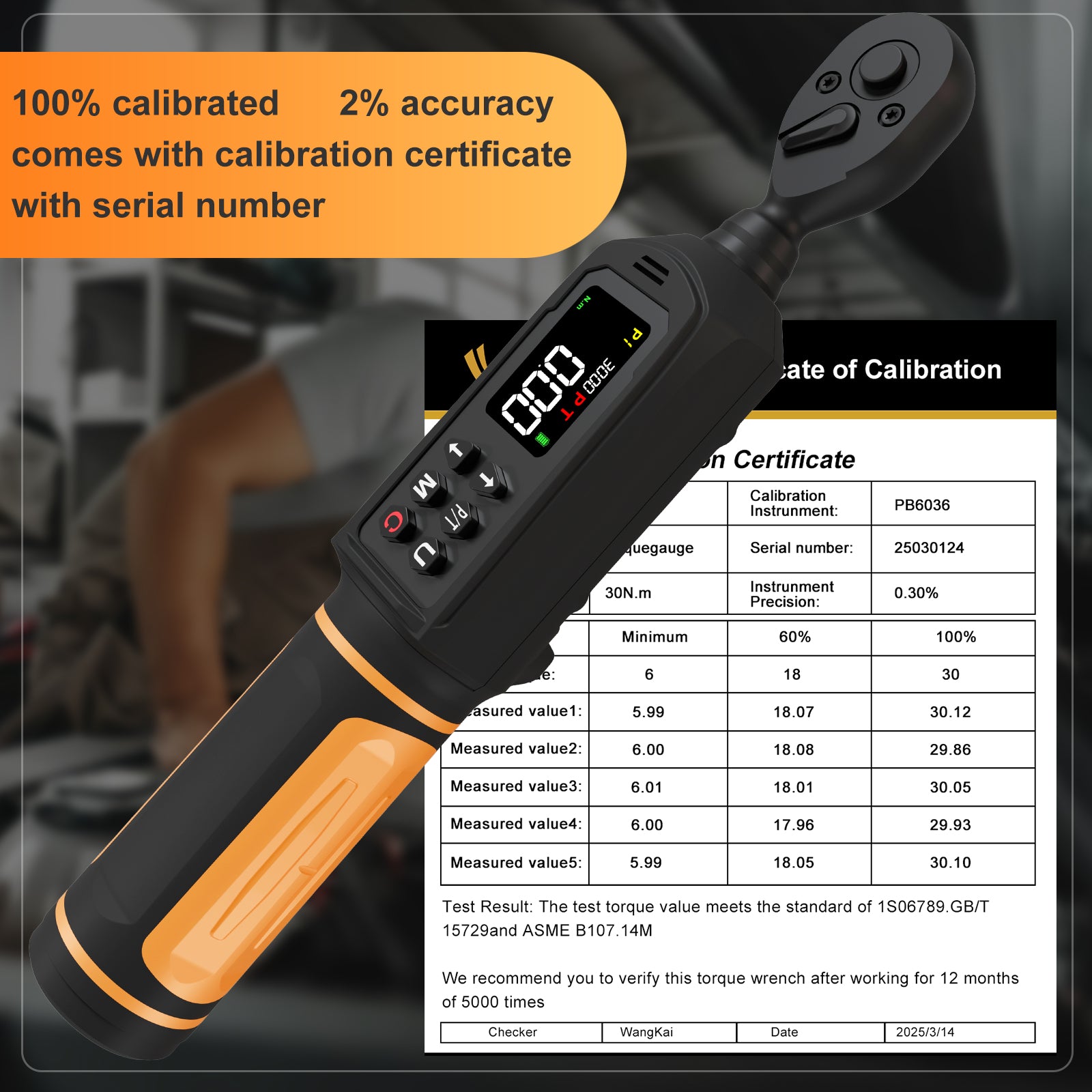Digital Torque Wrench 1/4 Drive, 1.1-22.1 Ft-lbs/1.5-30Nm Range, Electric Torque Wrench with Dual Direction Ratchet, ±1% Accuracy with Vibration, Buzzer and LED Alert
