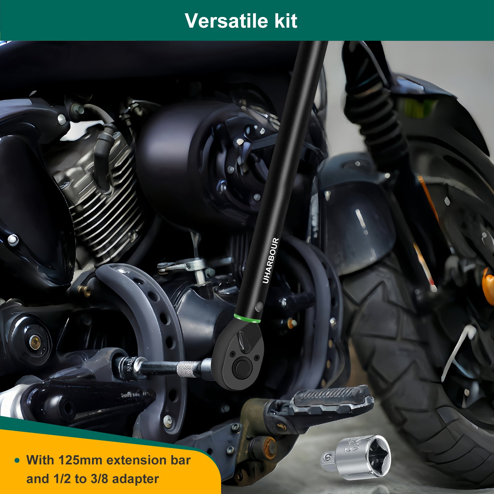 Uharbour Torque Wrench 1/2 10-170FT.LB, with Adapter and Extension Bar, Dual Direction 1 Nm Adjustment with Lock, ±3% Error Accuracy with 72 Teeth